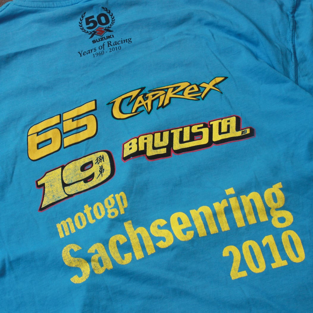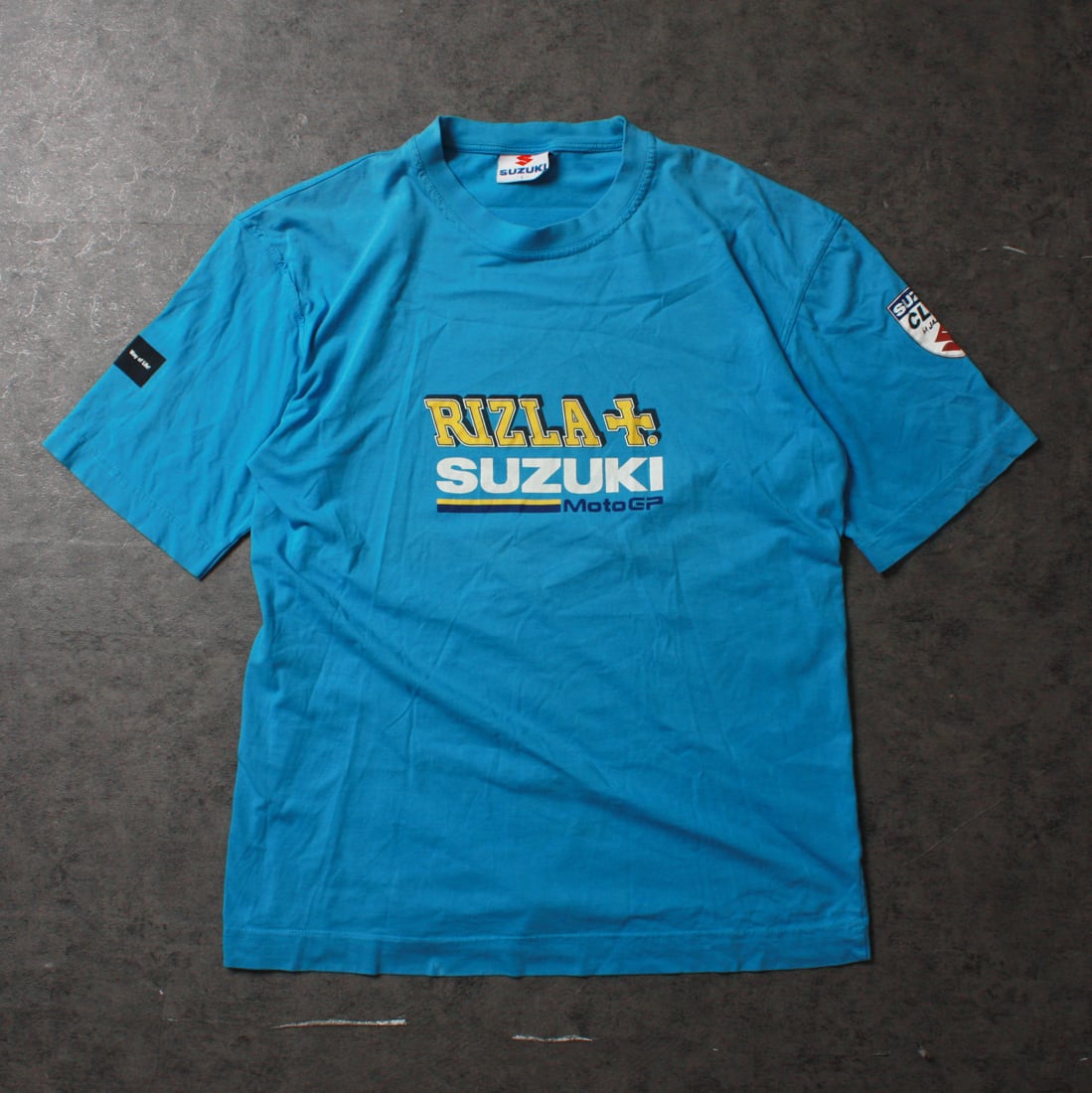 スズキのメインスポンサー、タバコ関連ブランドRIZLAの文字が入った50周年記念TEE。