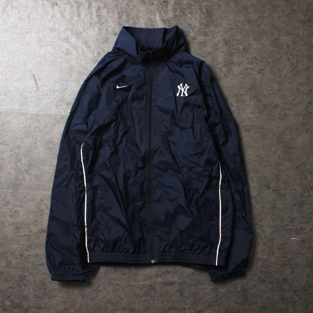 両胸にナイキとニューヨークヤンキースのロゴ刺繍がなされた着回しのいいナイロンジャケット。