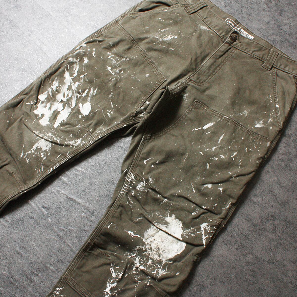 当て布を施した二重生地のダブルニーが特徴的、ハンマーやスケール、ペンなどを収納できる機能的なツールポケットを装備。