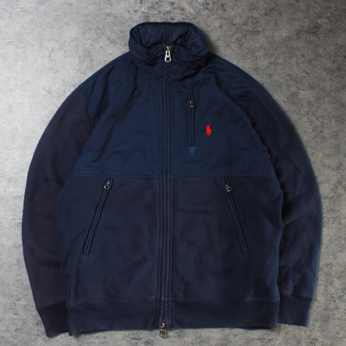 Polo Ralph Lauren ポロラルフローレンのジャケットです。素材はコットンとポリエステルでスウェット感覚で着用いただける一方、裏地はフリースになっており襟元にはパーカーが収納されているので薄手のジャケットとしても着用いただけます。