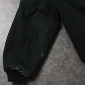 全体的に色落ちや汚れはありますが作業着として着こまれたからこその味と言えるでしょう。左袖に破れがありますが今後もまだまだ育てることのできる一品です。