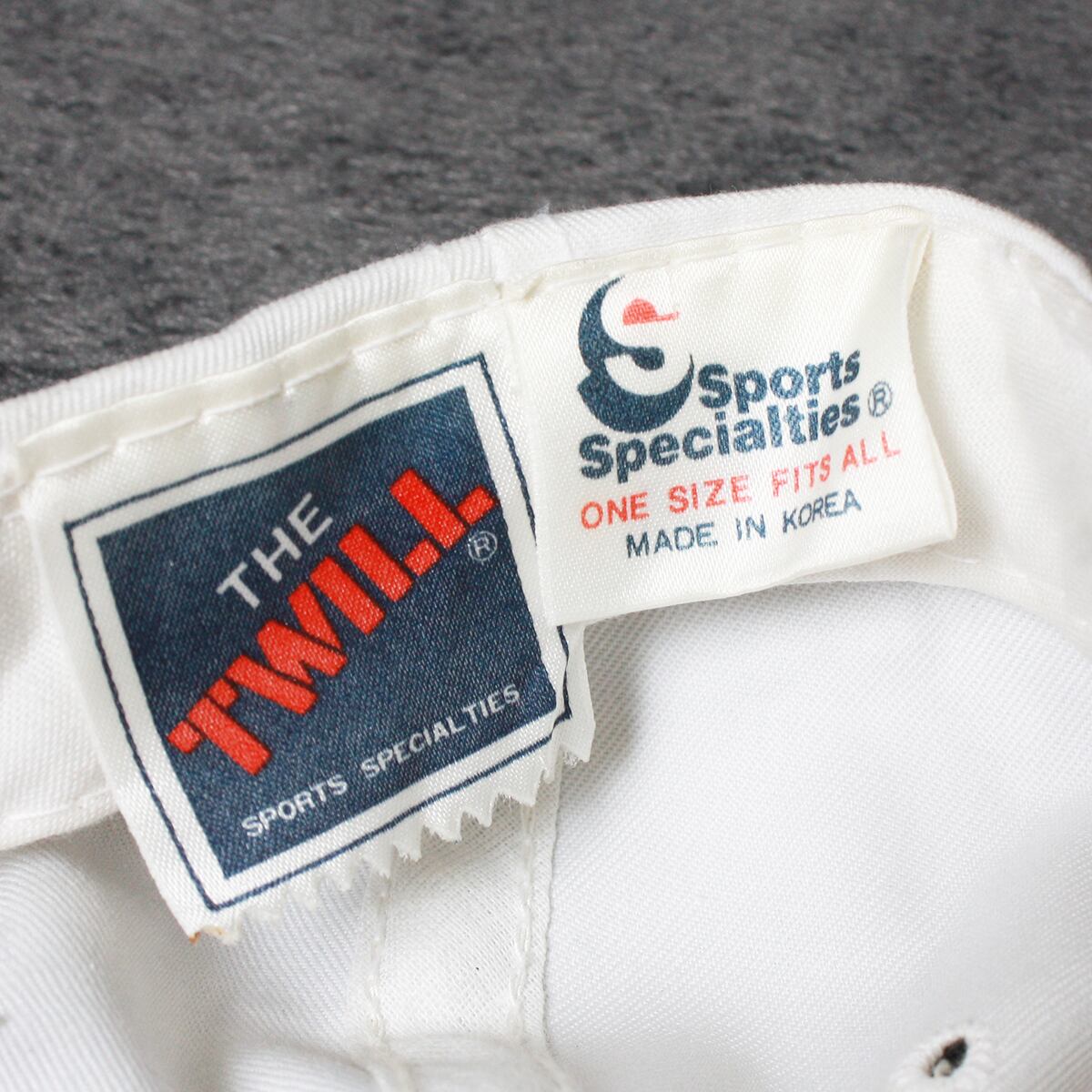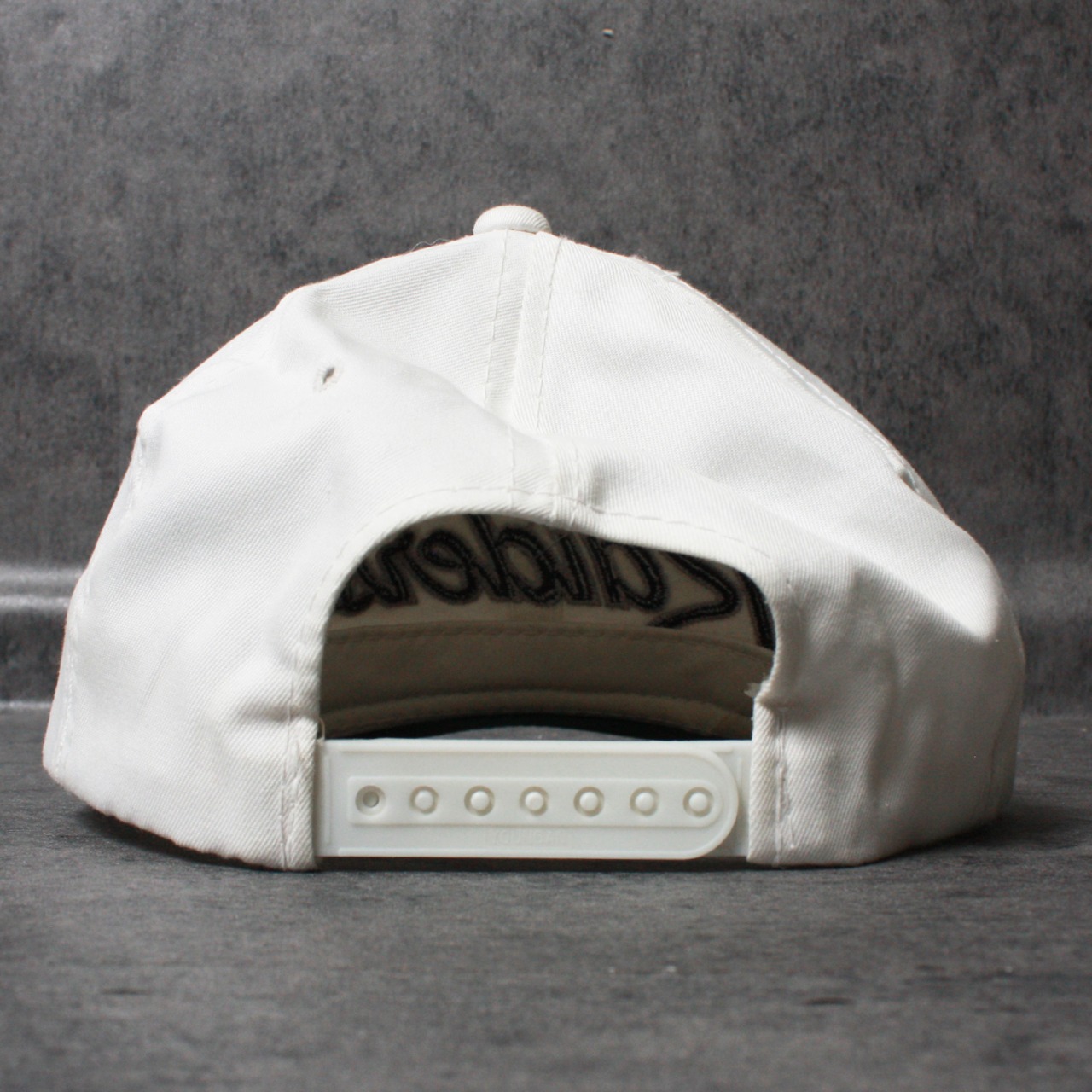 LOS ANGELS RAIDERS ロサンゼルスレーダースのスナップバックキャップです。90sのSports Specialties製でメインカラーのホワイトにつば裏のグリーンが映える一品です。RaidersのキャップはNWAのEAZY-Eが着用したことでも有名で、ブラックボディーはよく目にしますがホワイトは滅多にお目にかかれないレアな一品です。