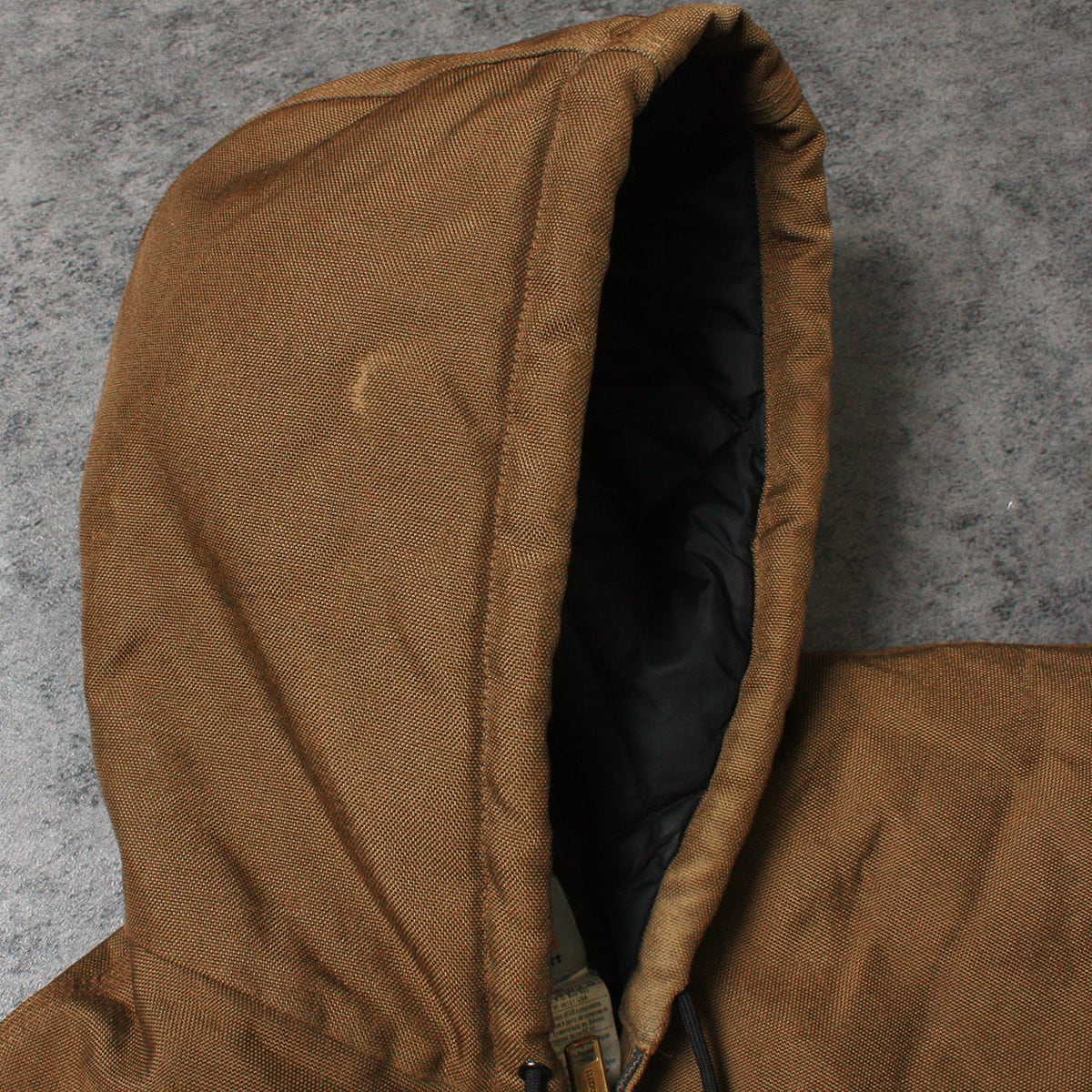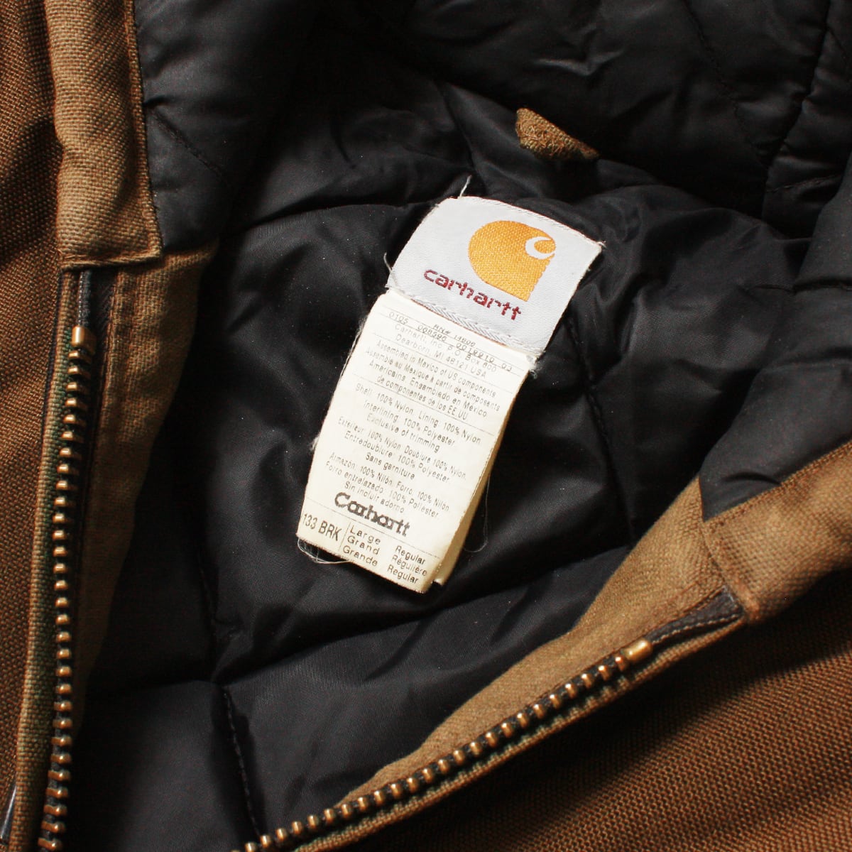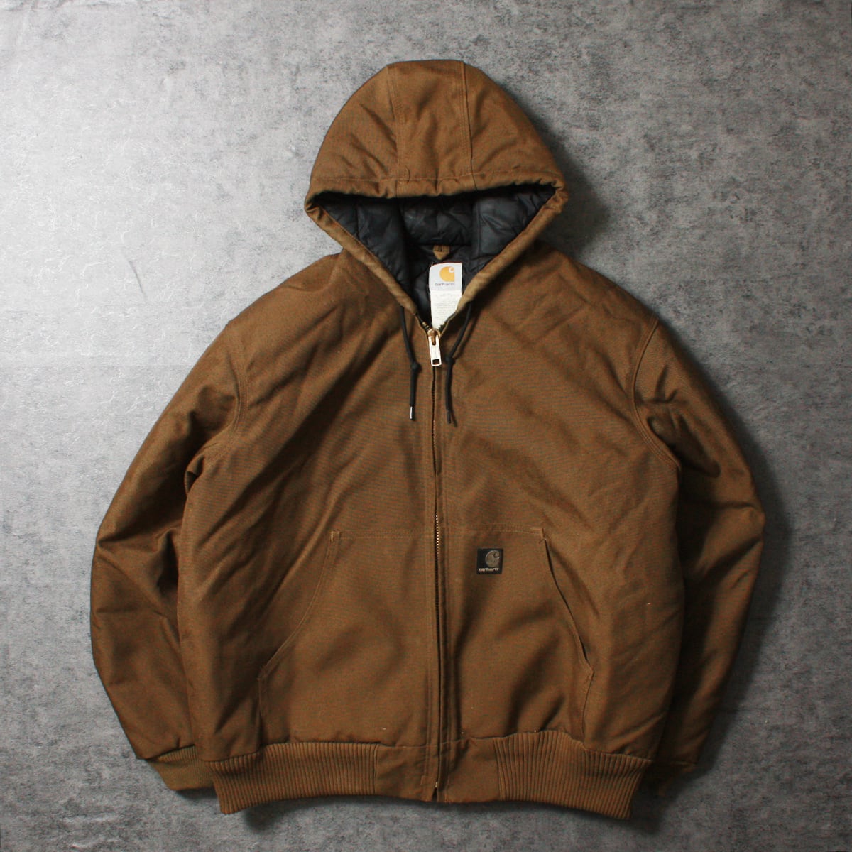 CARHARTT カーハートのアクティブジャケットです。素材はアクティブジャケットでは珍しいナイロンで、パッチもラバーとなります。一般的なアクティブジャケットと差をつけて着たい方にオススメです。目立った傷や汚れもなく状態は極めて良好です。
