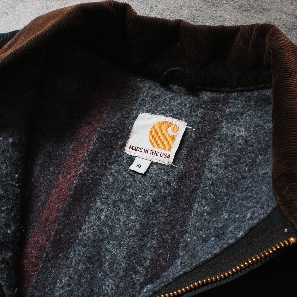 CARHARTT カーハートのデトロイトジャケットです。貴重なMade in USA製。傷や汚れはありますが作業着として使用されていたが故の味があり、同じものは存在しません。無骨さと漢らしさを感じる一品です。
