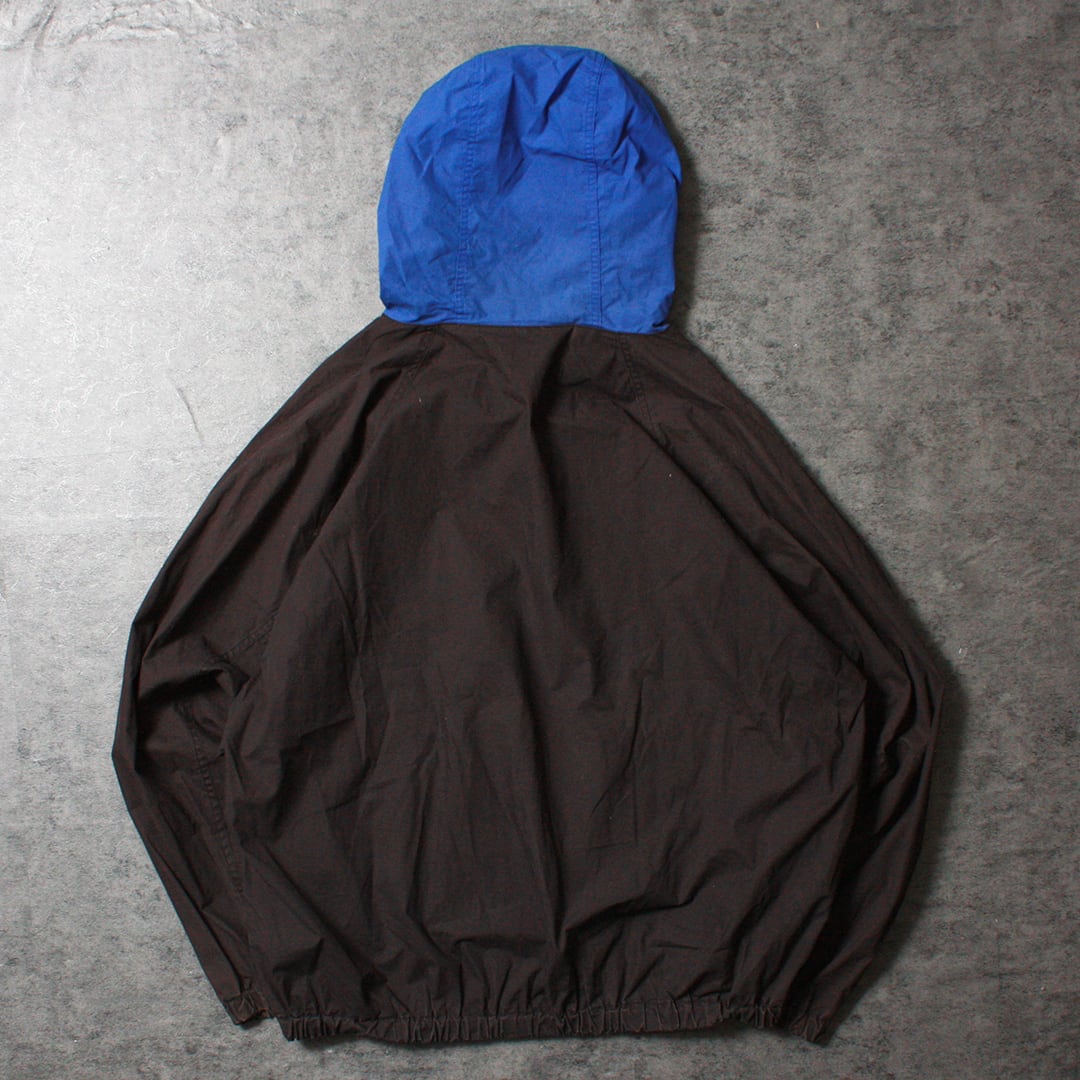 フーディーのブルーカラーがアクセントになり、薄手のコットン生地のため季節を問わず着用いただける一品です。