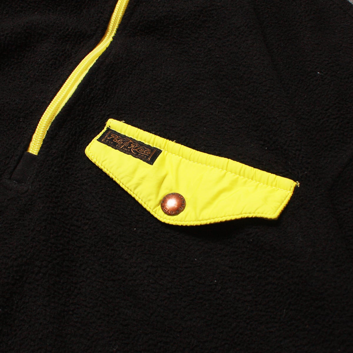 Polo Ralph Lauren ポロラルフローレンのフリースジャケットです。シンプルなブラックのボディに黄色の差し色が目を引くアイテム。使用感はありますが目立った傷や汚れはなくまだまだ着用いただける一品です。