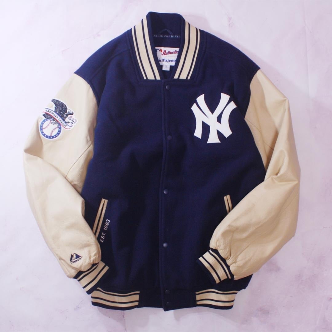 スポーティーなアイテムですが、袖のキャメルカラーのレザーが大人な印象にさせます。